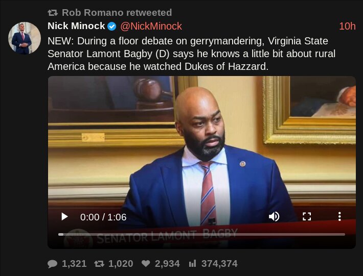 >During a floor debate on gerrymandering, Virginia State Senator Lamont Bagby (D) says he knows a little bit about rural America because he watched Dukes of Hazzard.lmao