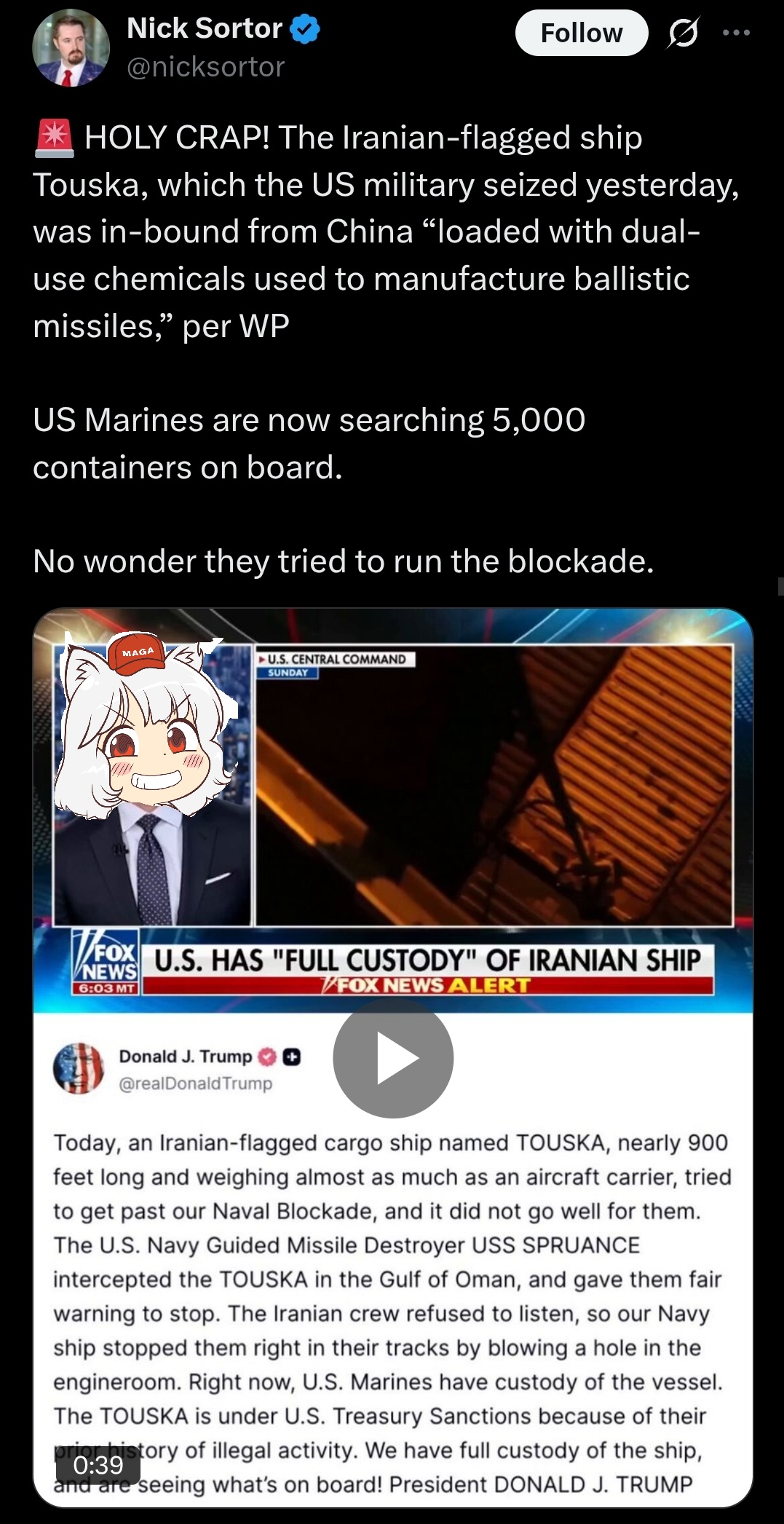 Have you tried the Vance the Menace's Hot Dog Water Float anons?https://nitter.net/NostromoCore/status/2033345683944526221#m