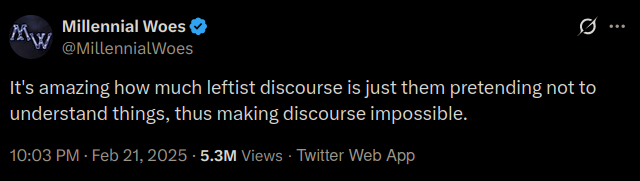 >>533752804i love that one. it makes it extra ironic that these homos think just because they learned to screech about pissrael two years ago they are now based and valid. picrel demolishes leftism in 2026.