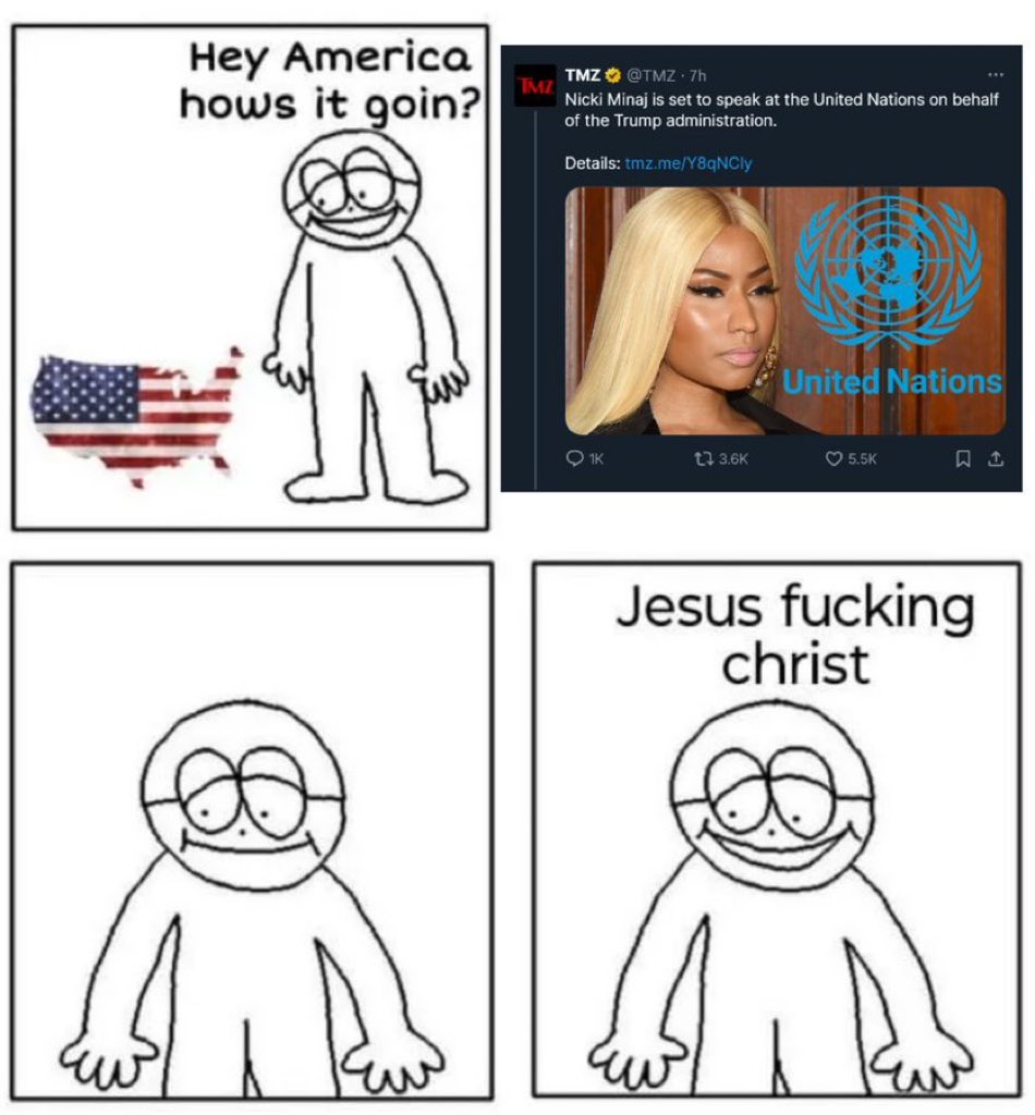 >>533753685I don't know who or what that thing is Anon, but I would say it's beyond America that's fucked up too, if that's the UN also