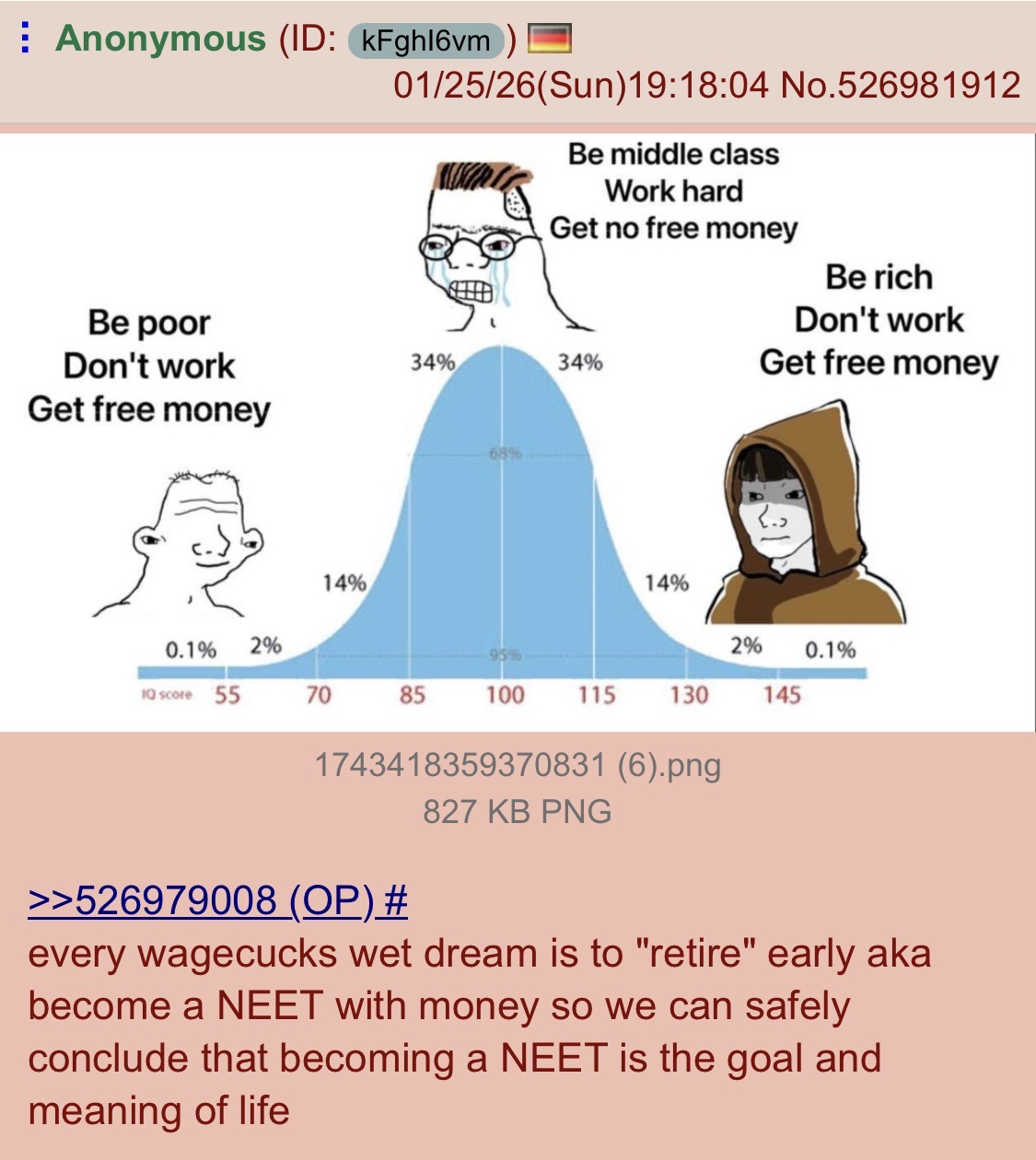 >>533752892BTW the path of the NEET is one big IQ test. You need to be planning some form of long term financial security, be it through crypto or some online business, whatever.There's a lot of midwits and failed normie "NEETS" that are basically doing one big Diogenes pseud larp who are literally going to ruin their lives and becomes totally rekt. If your NEET path involves you remaining broke well into your 40s, gg you failed the IQ test. The goal isn't to give up, it's to find your own path through creative problem solving and intuition. Failed normies don't understand this.