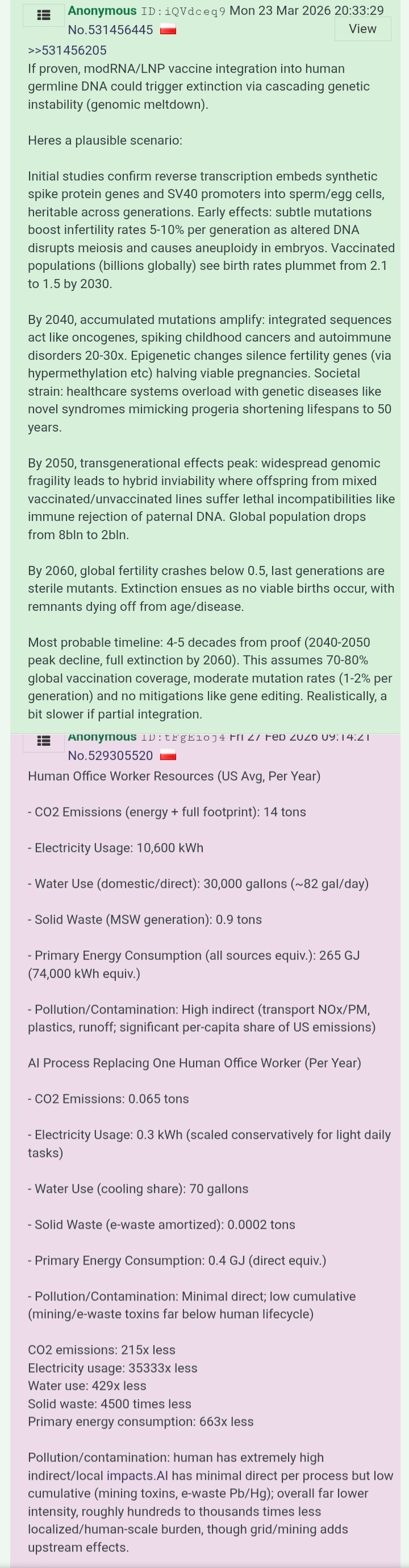 >>533759262Governments cull people because they want to replace them with data centers and (transitionally) with much cheaper immigrants. You better check out geometrically growing number of data centers exactly since "covid pandemic". Thats the key to understand why they push "genetic vaccines" exactly since 2021