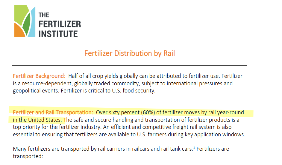 >>533763476Depends on what we are weighing hereThe discussion is about Diesel and Fertilizer and other inputs related to the Ag industry.In terms of rubber ducks, sure, Trucking is by far the leader in tonnage shipped but in terms of Fertilizer and Bulk Goods Rail and Ship has trucking beat.
