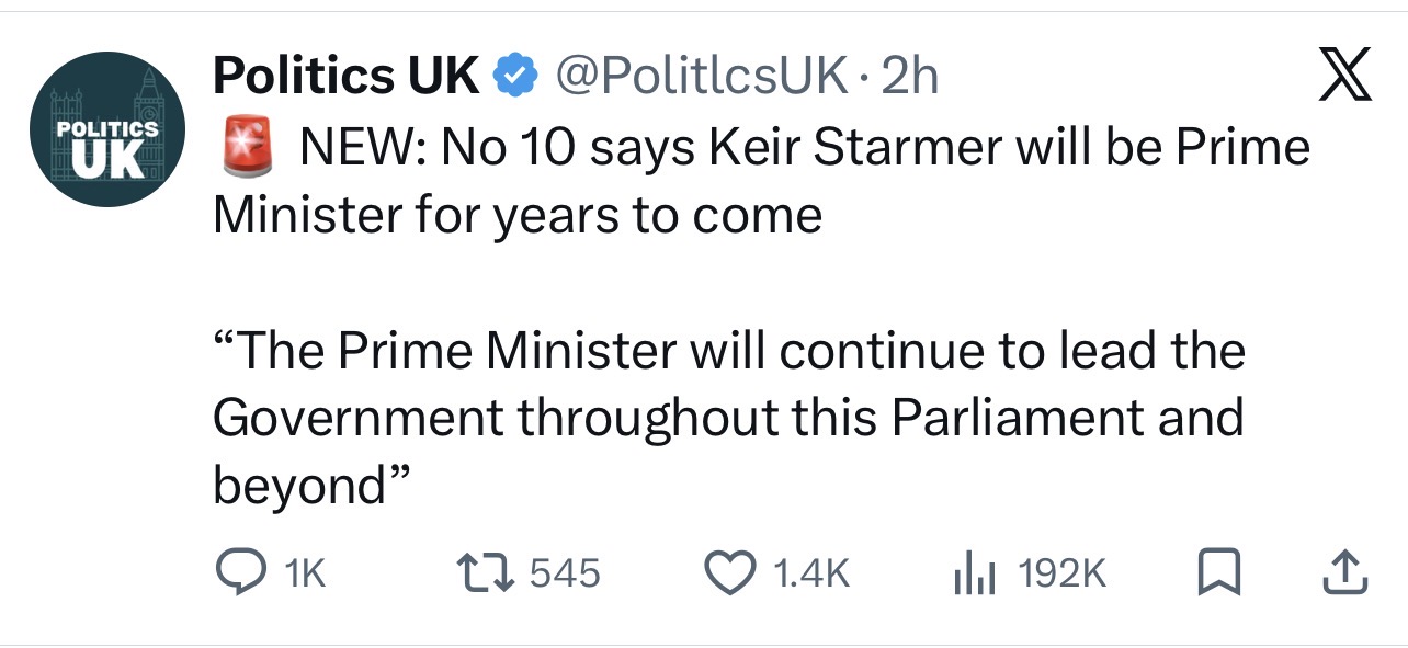 >>533772012To add on to the last post, I just like the idea of Starmer going around with a suicide vest on basically daring his cabinet to turn against him.