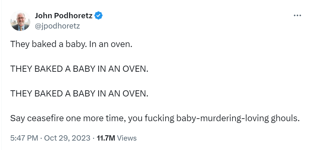 >TheyWho? Give names. How many were there? Ages? Ranks? What did "they" look like.>put a baby in an oven.Did you see it? Have proof? >Say ceasefire one more timeSo, killing lots of people that had nothing to do with an unproven allegation is totally legal and moral to you?>you fucking baby-mudering loving ghoulsCondemn an entire group of people based on your hatred and accuse them of an unproven allegation, that "they" were no where near.Jews are so fucking wretched and wrapped up in their own created victimhood that they cannot see their actions are the exact same as what they accuse others of doing.
