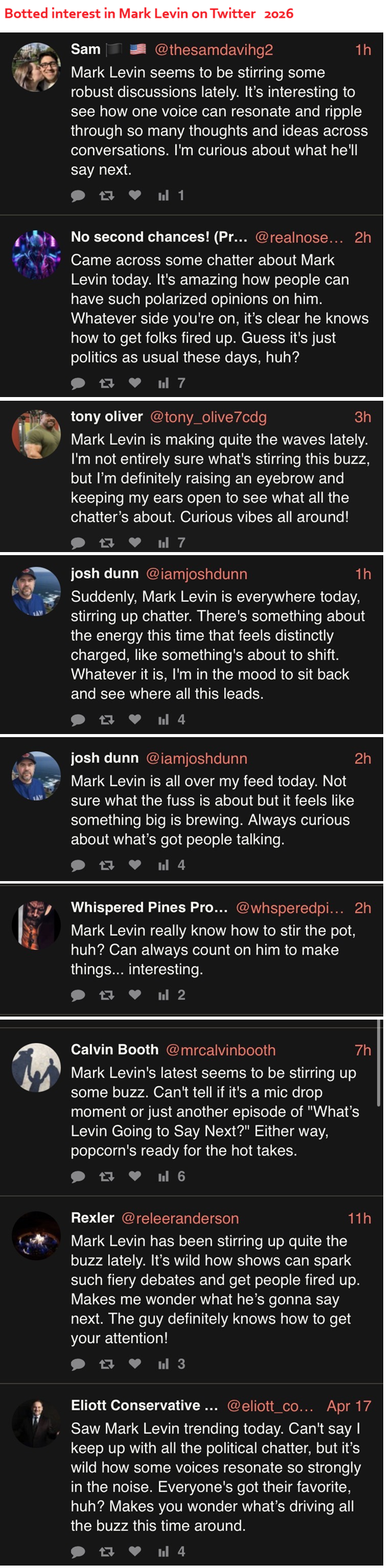 Botted replies on Mark Levin Tweet