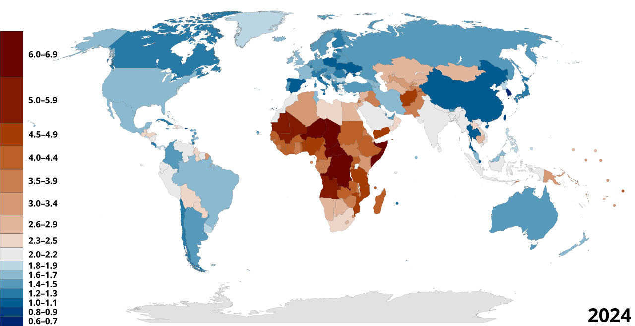 >>533765667>>533765702India has a tfr below replacement level now, Latin America is aging too, some SEA countries like Thailand is literally on the level of south korea now and even Islamic nations like Iran and UAE have low tfr. Only Africa has high tfr because they're poor