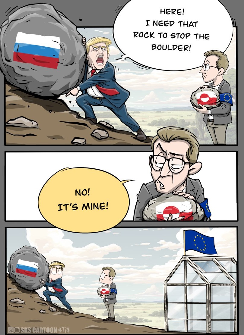 I've never really took this whole anti-Europe charade from Trump seriously.I think the whole Greenland controversy was just a ploy to put pressure on euro NATO members to start militarize. It was Trumps unconventional way to tell us euros to stop relying on USA and start taking shit seriously. Trump wants Euro NATO members to become more active players in the this cold war 2.0 that is currently going on, we saw that with the Iran conflict.Trump was never serious about attacking Greenland, he knows his approval would be gutted if he did and the US military may even have coup'ed him if he gave the order to attack EU. He wants the world however to see him as unpredictable and unhinged because it makes his rivals afraid of making any moves, and it improves his chances to get the deals that he wants.I also think he's doing these charades because it rejuvinates Americans beliefs in their own country. It makes Americans more patriotic when they feel that their country is not in decline but moving forward and still powerful.