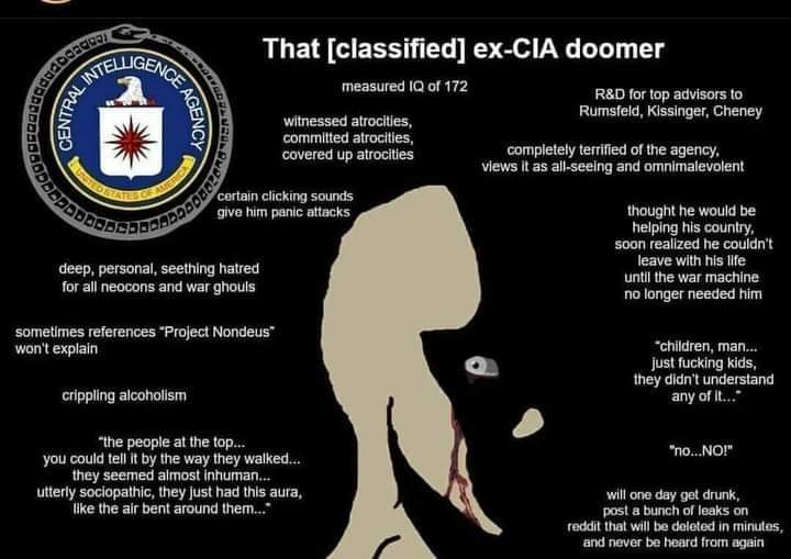 >>533797230These agencies are all competitive with each other. The CIA thinks the FBI is the lame shitters, since the CIA is much more clandestine. The FBI thinks they're like an underdog doing all the hard work. They all have these weird psychological profiles that are open to manipulation.