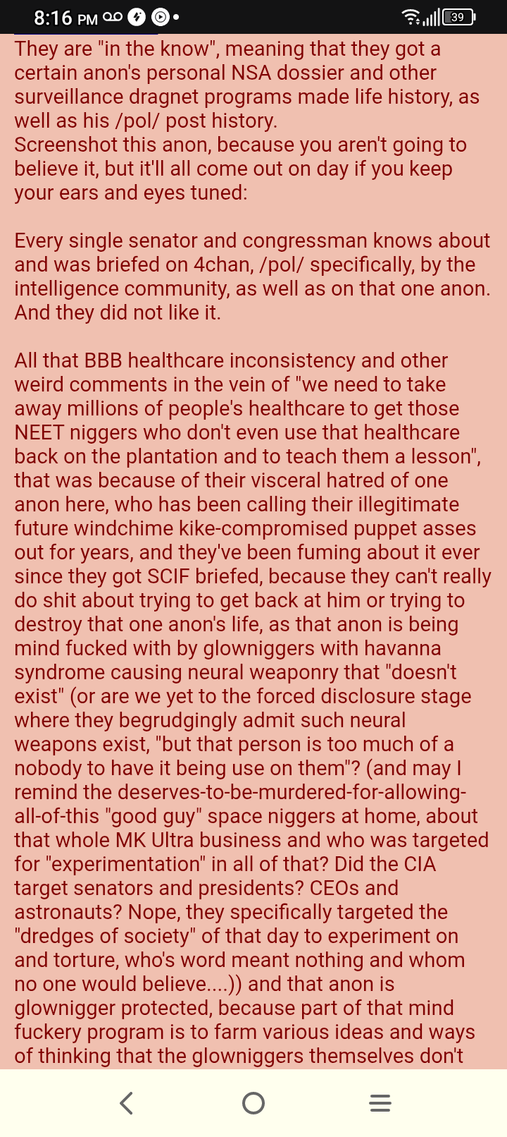 >>533790639>GLOWNIGGERS RAIDING HOMES FOR POSTS ONLINESo they can personally tongue my anus?