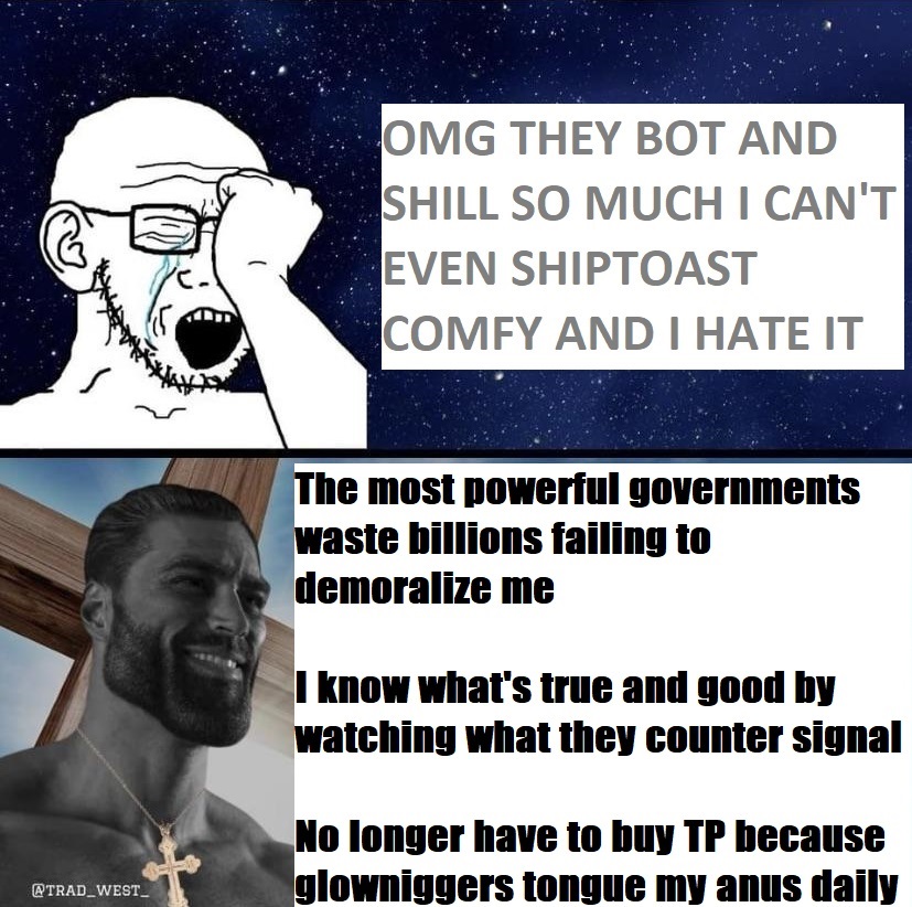 >>533790639We lived through the age of opportunity, a type of golden shitposting age if you will.In no previous time period could a man shitpost with such fervor and with such great ease.In the east communism kept people in strict order and behind an invisible firewall. Climbing up the hierarchy truly did require exception shitposting skills especially social ones. The communist block would see a brief glimpse of opportunity for 2 generations, yet it would also be plagued by western elites abusing the falling system for their gains.In the south the african ways have never changed. Shitposting is shunned and crushed by a violent R-selected collective. Reproduce fast, die young, even if external factors don't demand it their genes will drive them to idiocy.In the islamic world a more orderly violence remains but shitposting is still mostly hereditary or limited to truly exceptional individuals.In the far east with rare exceptions the asian blood demands obedience and limited creativity so shitposting is rare there. Perhaps Japan could be considered an exception but not for long. All of these people have some sort of reason to claim the conditions brought them down.But you, who lived in the West, you can truly say "we experienced an unprecedented age of freedom of expression and shitposting opportunities"That time is coming to an end. Years of shitposting recession are coming. Some say years of high austere measures will come with them, others claim a total clamp down on shitposting and non-approved speech due to the upcoming digital ID and surveillance bills. Either way there will be less opportunity to shitpost, all major platforms will be hit, censorship will rise, information of everything that was in abundance before will be limited if available at all. There will be less venues to shitpost and some anonymous venues like these (4chud), now deemed the pinnacle of shitposting, will become obsolete.