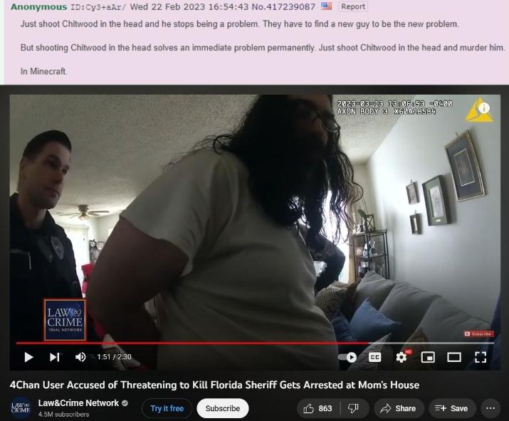 Imagine Chudding Out online so bad the feds show up.It's very telling how much /pol/ is sympathizing with this guy because he's just as stupid as the average /pol/ user.