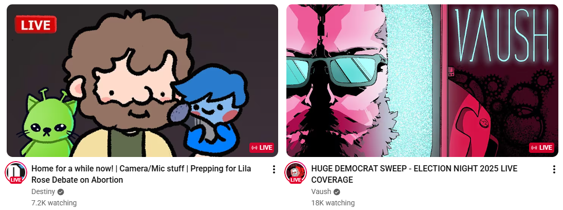 Destiny is pretty much just as big as he was before he the lawsuit (which he's winning).Fuentes hates the Republican party now and is literally shilling for people to vote dems. Complete lib dem victory