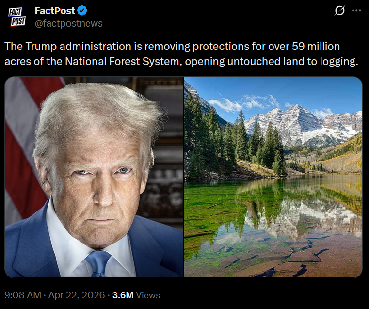 >>533793713Reminder that before the Federal Government realized that they do not have infinite land, the last thing they did with this land was to give away homesteads to every white American capable of getting to their new land and working it.Now they're removing the protections, to give them to billionaire loggers/mining oligarchs and you don't even factor into the equation.