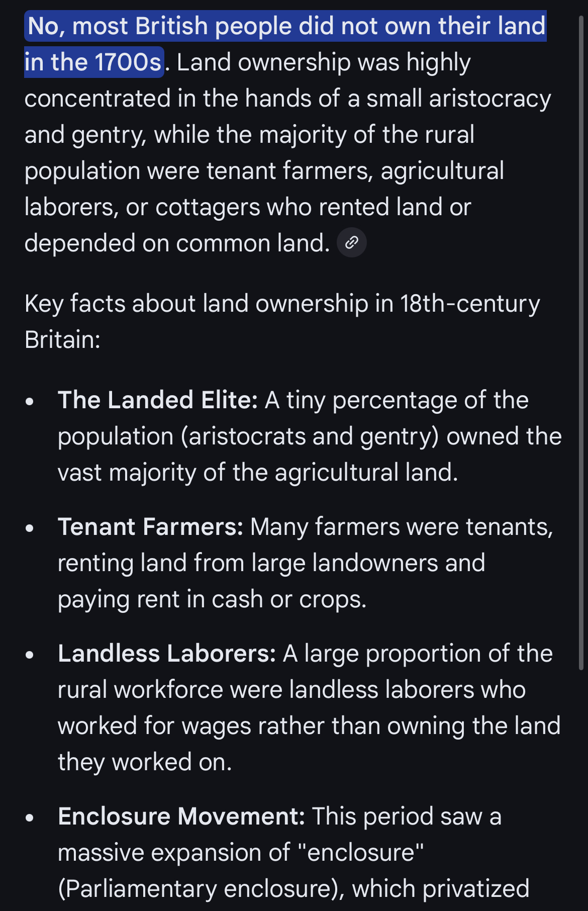 >>533805268>they were tied to the landThere was nothing preventing them from leaving except not being able to own other plots of land in the country. Nothing prohibited them from moving to the New World where land (belonging to Native Indians) was given freely.>British people in the 1700’s weren’t forced to stay on the landWouldn't it be outrageous to be forced to stay on lands that don't even belong to them?