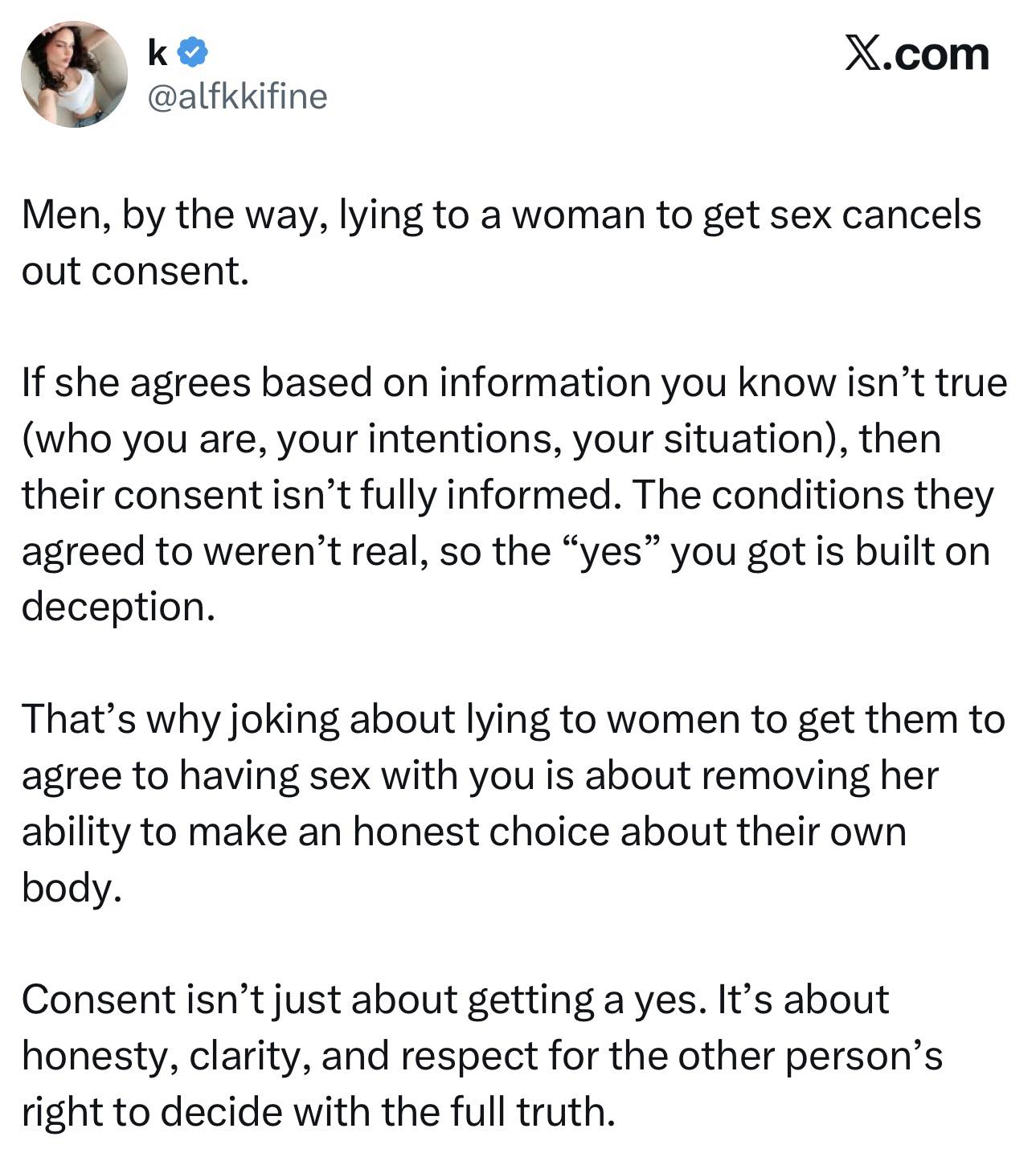 Hear that, chuds? Lying to a woman in order for her to fuck you is still rape.