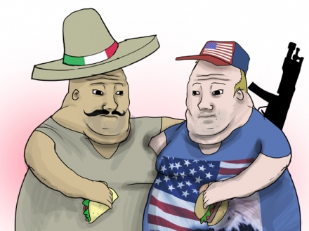 My wife is Mexican. Granted, she's castizo but the idea that Mexico consists entirely small brown people who are part of a cartel isn't quite true as burgers would have the world believe.