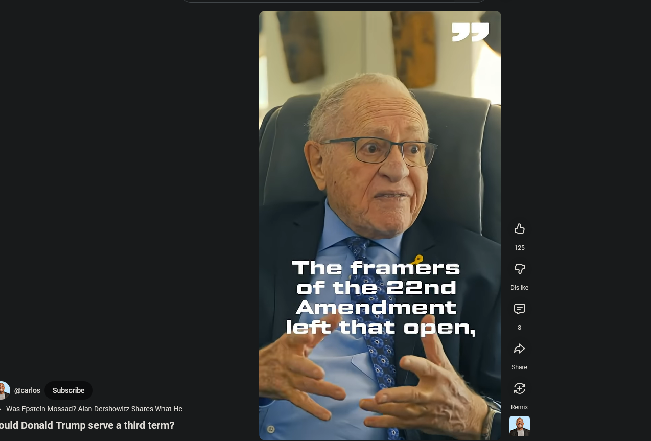 Esteemed law professor Dershowitz has written a book explaining that it's possible. There's no constitutional prohibition against a 3rd term. He has spent his entire life studying law. He knows more than you.https://www.youtube.com/shorts/OuFP9K2gAcgDershowitz shot down any aspersion that such an interpretation is a violation of the Constitution's intentions. 'The only proof of what the framers intended is what they produced,' he told the Mail. 'And they produced an amendment with a hole bigger than the new wing of the White House that can be used to allow a president to serve a third term.'Hypothetically, Trump could become the running mate of a close ally like JD Vance or Marco Rubio, who would agree to troll the Democrats by ceding the role to him once elected.Though Trump brushed off securing a third term like this as 'too cute' in November, he disclosed to NBC around the same time that he is 'not joking' about making a comeback in 2028. Former White House chief strategist and longtime Trump ally Steve Bannon has even gone as far as asserting that the president 'is going to get a third term'. 'At the appropriate time, we’ll lay out what the plan is - but there is a plan,' Bannon told the Economist in October. Dershowitz's book, 'Could Trump Constitutionally Serve A Third Term?' outlines exactly what such a plan would entail https://www.dailymail.com/news/us-politics/article-15691753/trump-2028-president-term-alan-dershowitz.html