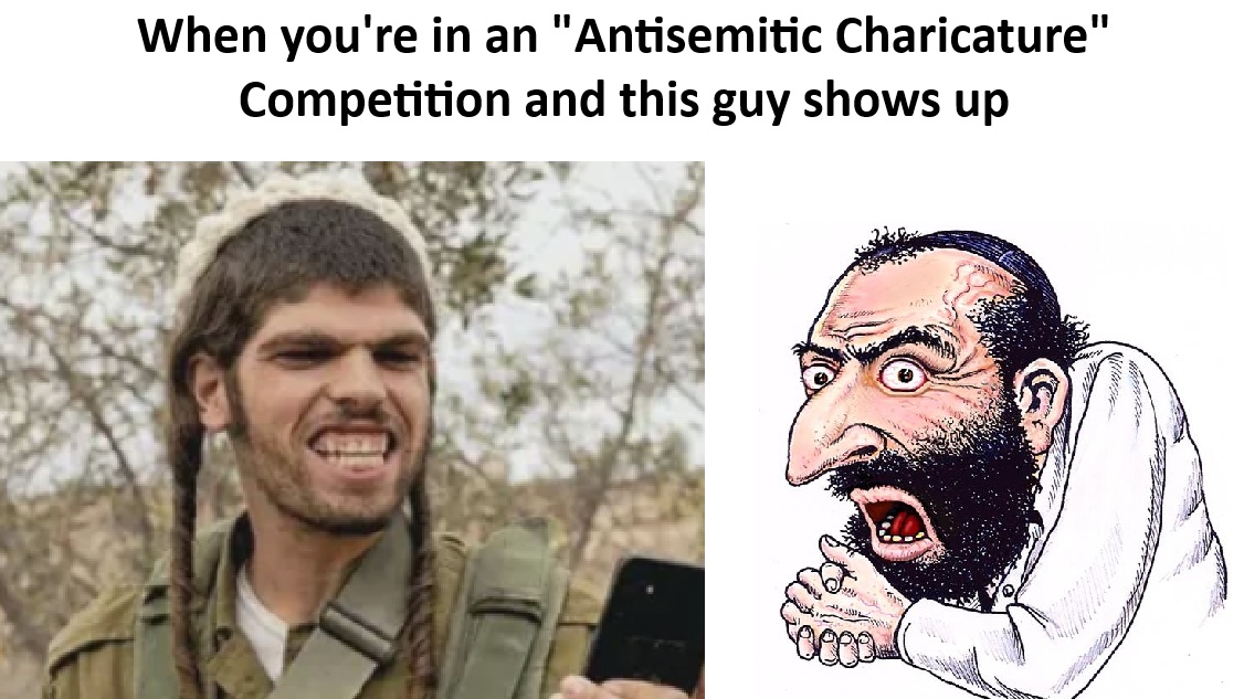 >>533825762>charicatureAre jews making shitty memes to discredit antisemites? It's shit even without the misspelling.