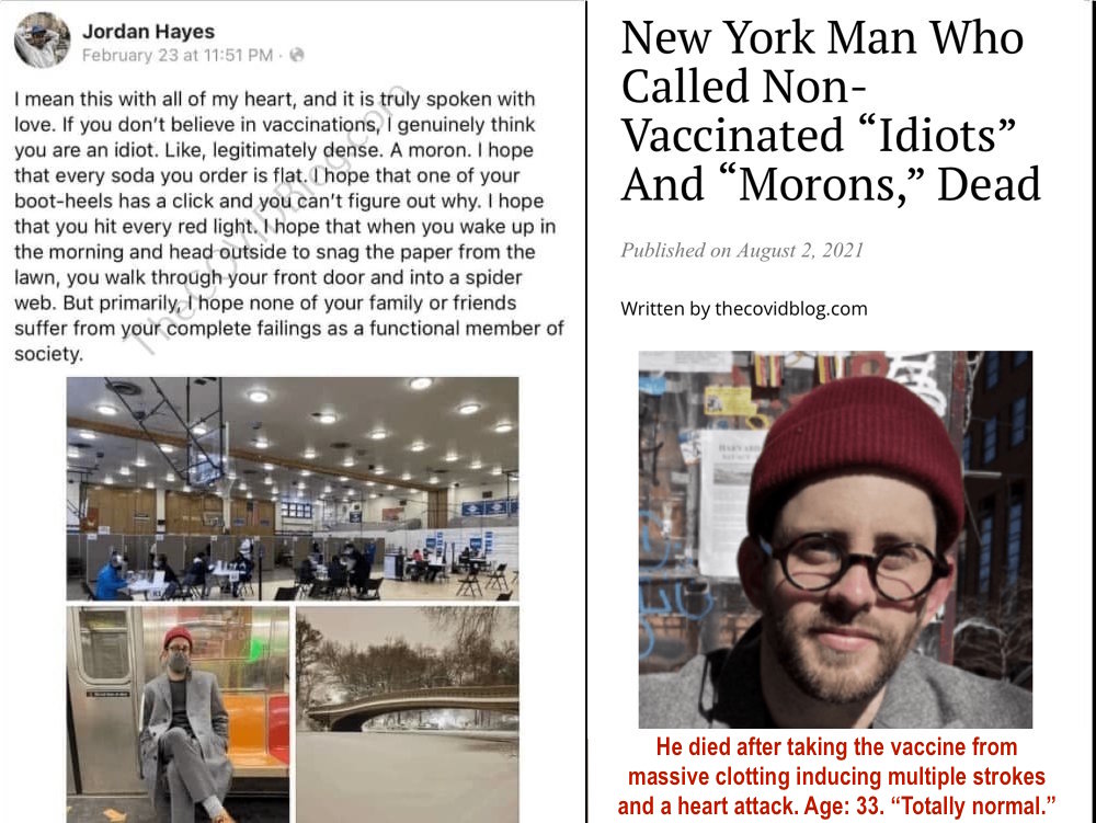 I mean, am I supposed to be upset that people who hate me walked into a killshed, put the bolt gun to their head, and told me they hoped I would die for not doing what they were about to do?If this WAS an intentional cull, and not simply medical industrial profiteering with an untested vaccine, then it's the kindest thing they've done for us because we watched literally hundreds of thousands of traitors either die, or wish they had've died.I'm never, NEVER going to weep for people who wanted me dead.If I met Fauci in the street, I'd shake his hand and if I met Bill Gates I'd wish him good luck on the next go.