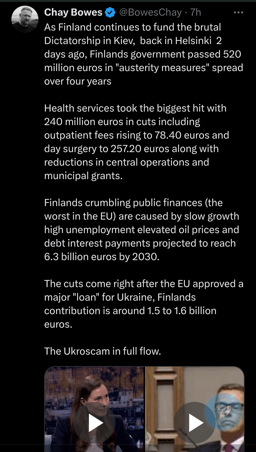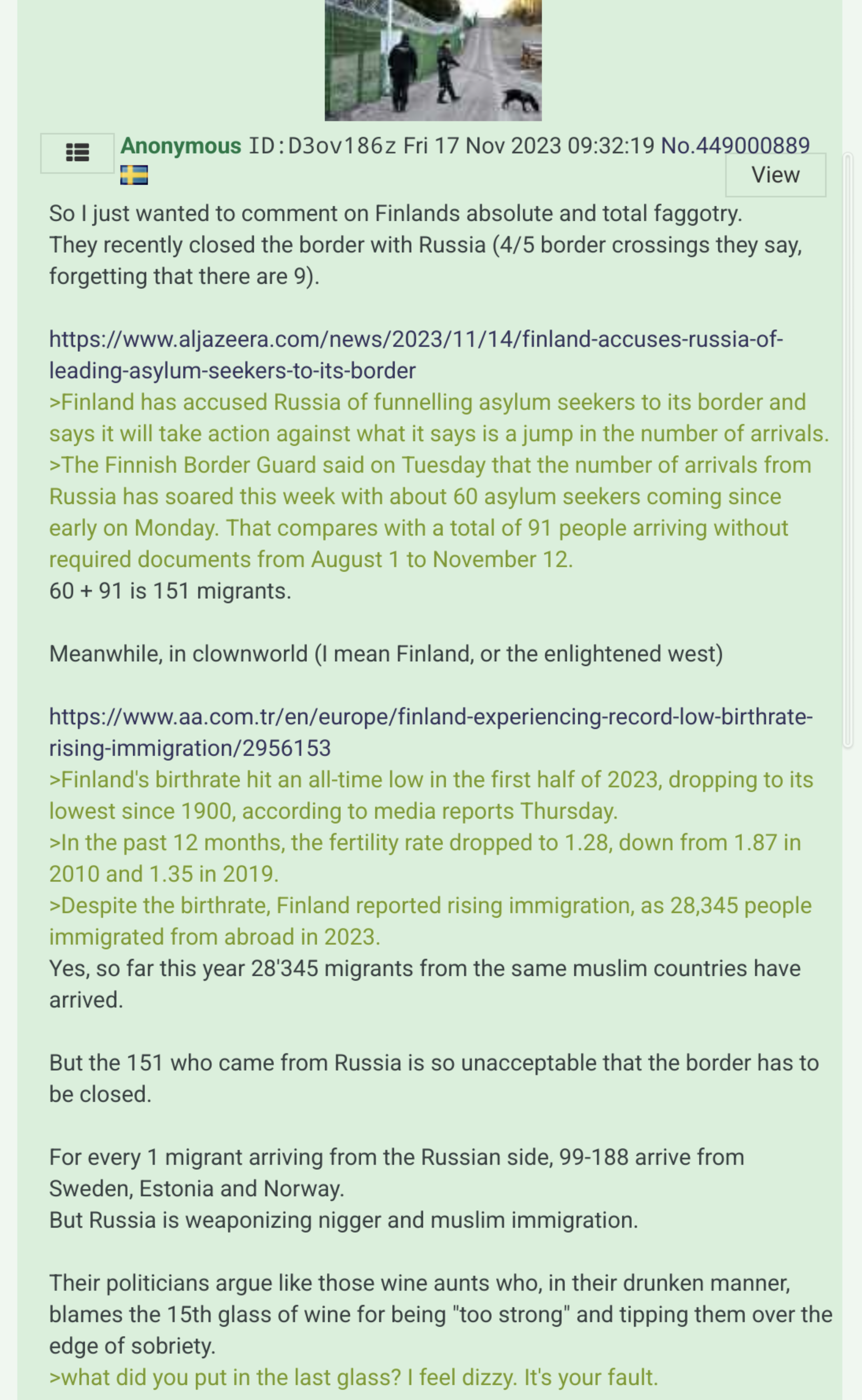>>533825419Finland's politicians has been bought by the Jewish globalists and they have sold out your country to escalate a proxy war with Russia whilst imposing economic misery on the people.The Finnish political class is not serving the interests of Finns when adopting a aggressive attitude towards Russia (Stubb labels the No.1 threat to the Western world).The country's leadership is largely captured by global financial interests including WEF (both ex-PM Marin and current President are Young Global Leaders) and funding from billionaire and Palantir shareholder Poju Zabludowicz (who also funded David Cameron). To top it all off, the Minister of Foreign affairs is also a Bilderberg attendee. Finland is a case study in how representative democracy (to the extent it ever existed) has now been completely hollowed out by oligarch and corporate interests.