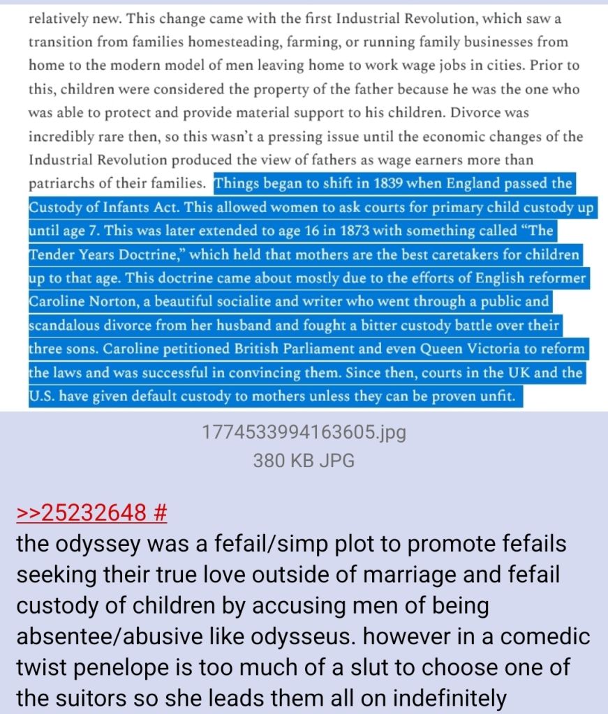 >>533830946>lefty scum love adopting terms from the other side and then corrupting them to their own purposeshumanism used to be the system of education where you study the greeks and romans in order to choose whether to be basil the great or julian the apostate. the left can endlessly deal with slut, fefail, roastie, but we need a word for when women kidnap the previous mans child by accusing him of raping her or being so abusively controlling as to tell her not to sleep with anyone else, then tell the next guy see im a family woman come be a family with me