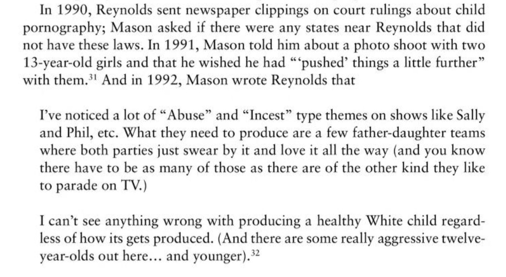 Here's what James Mason said about incest. I-I'm not sure that's a way to produce "healthy White babies".