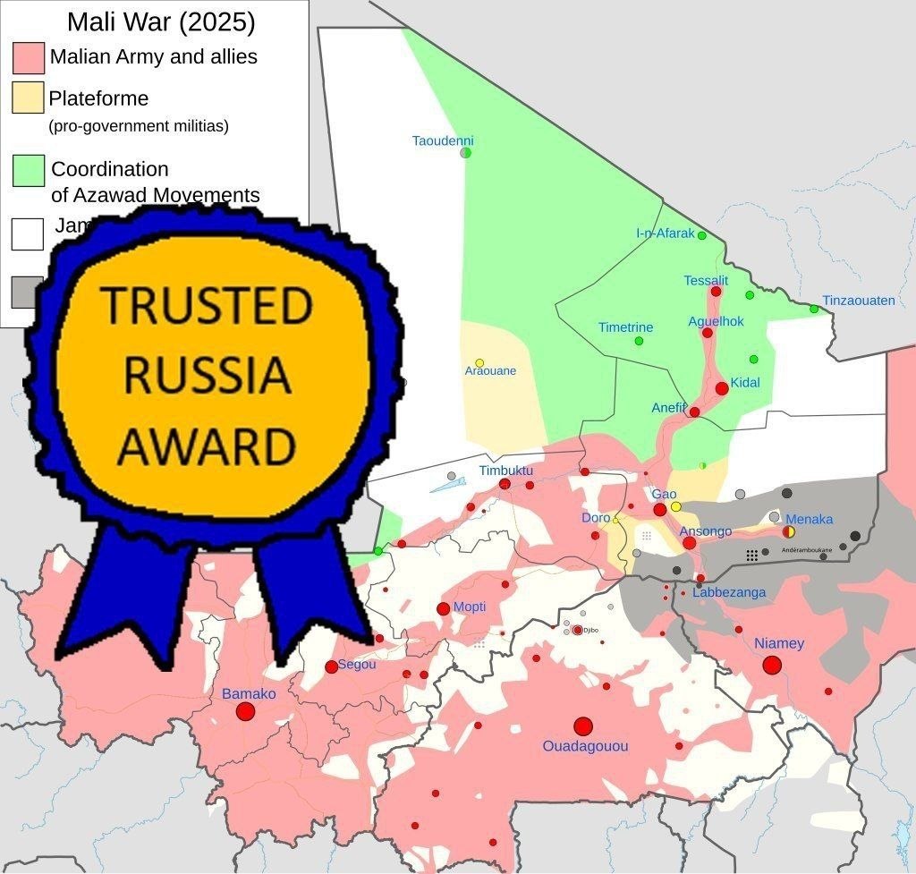 >>533830906Serious events are unfolding in Mali, as Malian junta forces and the Russian African Corps have suddenly found several key cities, including Kidal and Gao, contested in a single day. The geographic scope of the attack is reportedly much wider.