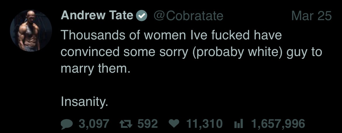In both the economic and sexual sense, all women will just become prostitutes—bought by the highest bidder. I don’t see any other outcome. A very small group of wealthy and famous men will have access to all the pussy. 99% of men will be single and will have to settle for a robot waifu