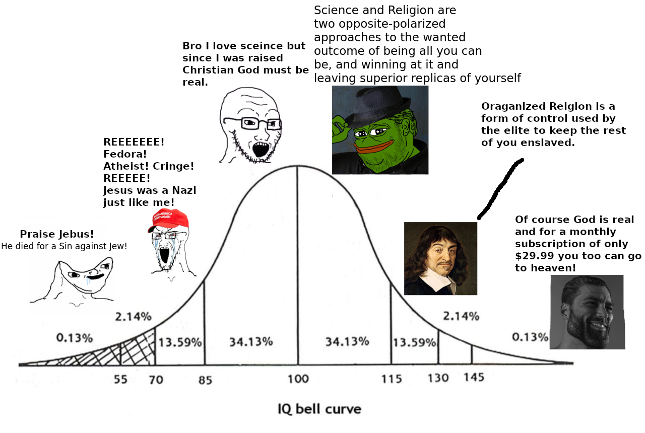 >>533843793I said 'probable internet test' which is a hedged empirical inference based on past experience, not a definitive authoritative statement of absolute nominal fact. That being said, apart from your own words, there is no epistemic warrant to suppose you took a real test or not, and in either case the rest of my statement holds: intellect alone does not guarantee truth, it must be igned in wisdom and oriented toward truthz and vanity about one's intelligence tends toward a lack of humility which has the dangerous effect of a tendency to reify errors by the powers of intellect rather than identifying and correcting errors which one has assumed as substantial elements of one's pride.