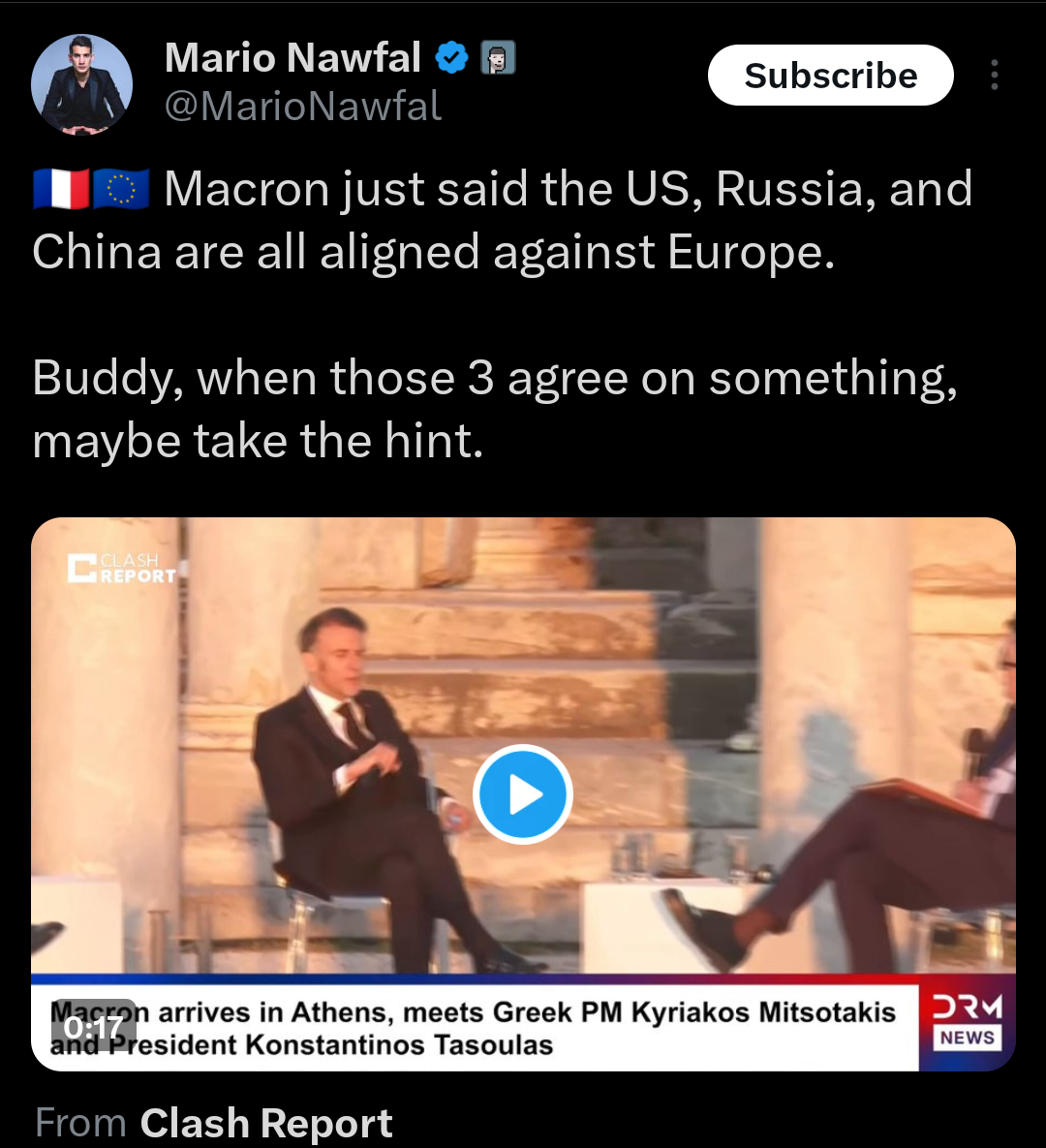I share domestic criticisms of EU policy, but anyone countersignalling the EU geopolitically is extremely suspect.