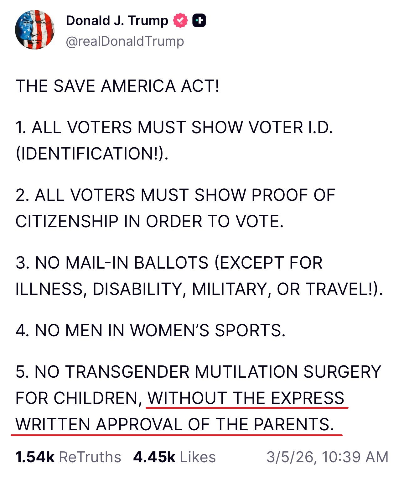 >>533846565>the trad values Trump stands forJust last month, the orange nigger enthusiastically claimed that surgery to mutilate children's genitals should be permitted in the U.S. with written parental consent. I've highlighted it in red so it stands out clearly. I'll spare you the recent photos of him hanging out with MAGA transsexuals, who are based aren't they, unlike those woke Europeans.