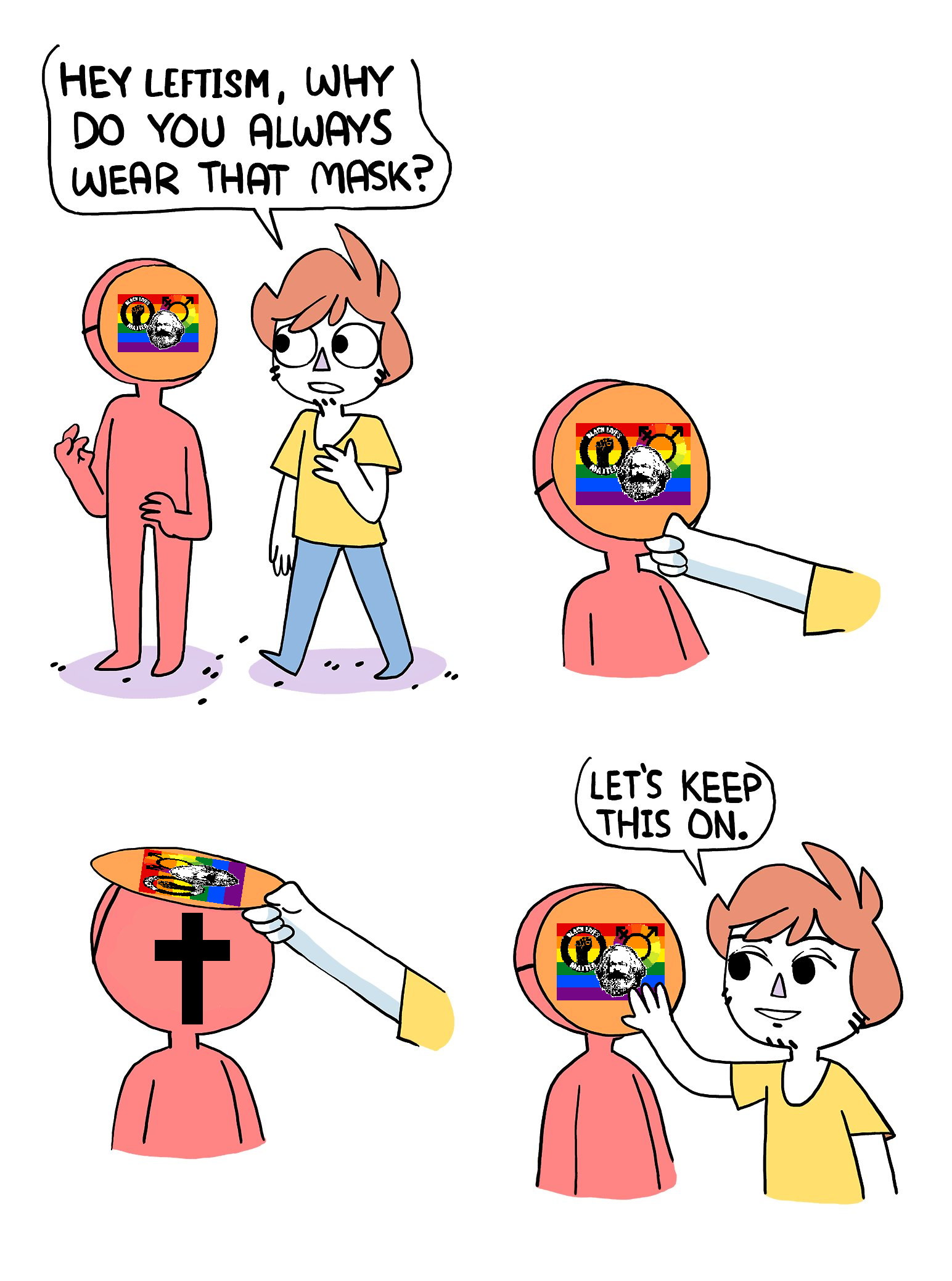 Red pushers are simply existing and then blue comes along and goes "you need to agree with me or else"
