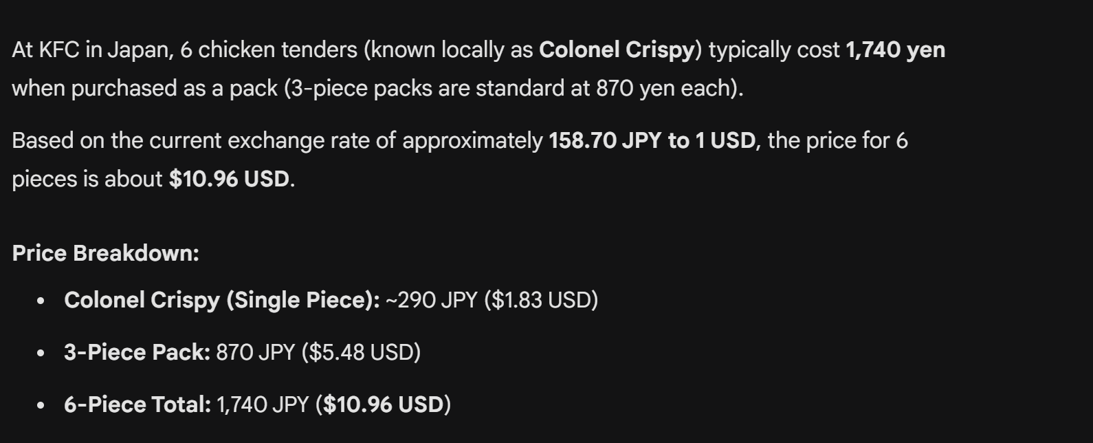 >>533844578KFC was never cheap, even in the 90s adjusted for inflation BUT more affordable than today. In the 90s the KFC bucket and sides were a nice alternative to pizza night. It was a thing that could feed the whole family. The prices they having been asking for the last 15 years or so have been retarded for what you are getting, beyond the normal "goyslop" price/quality ration. KFC has been shit for longer than even covid/post covid years. The KFCs in my regions have fucked up so back that almost all of them have close. One near me in the hood couldn't even compete, and it was right in the heart of what should be prime KFC market. The holding companies ruined KFCs viability.
