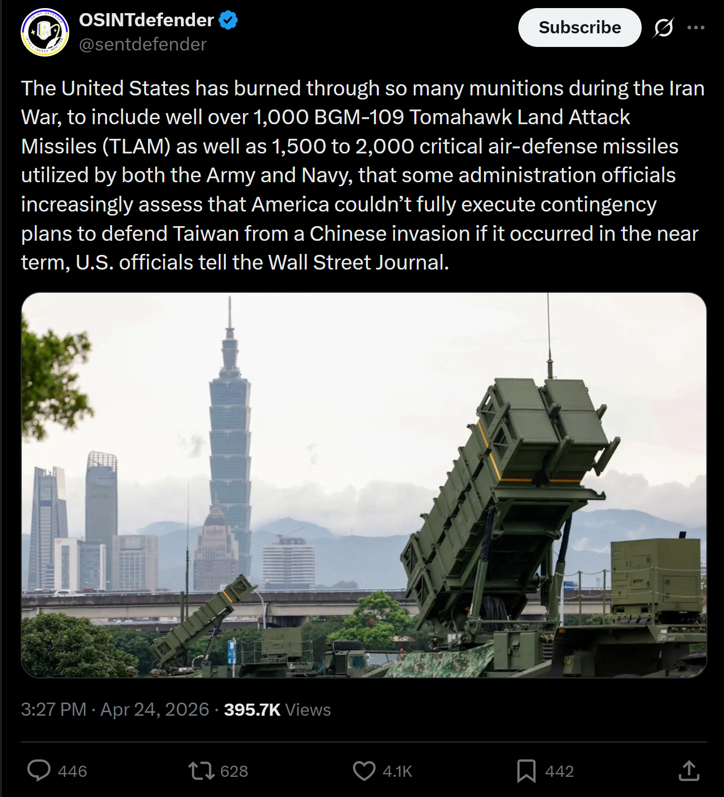 thanks OSINTdefender for giving communist China the go-ahead to attack Taiwan