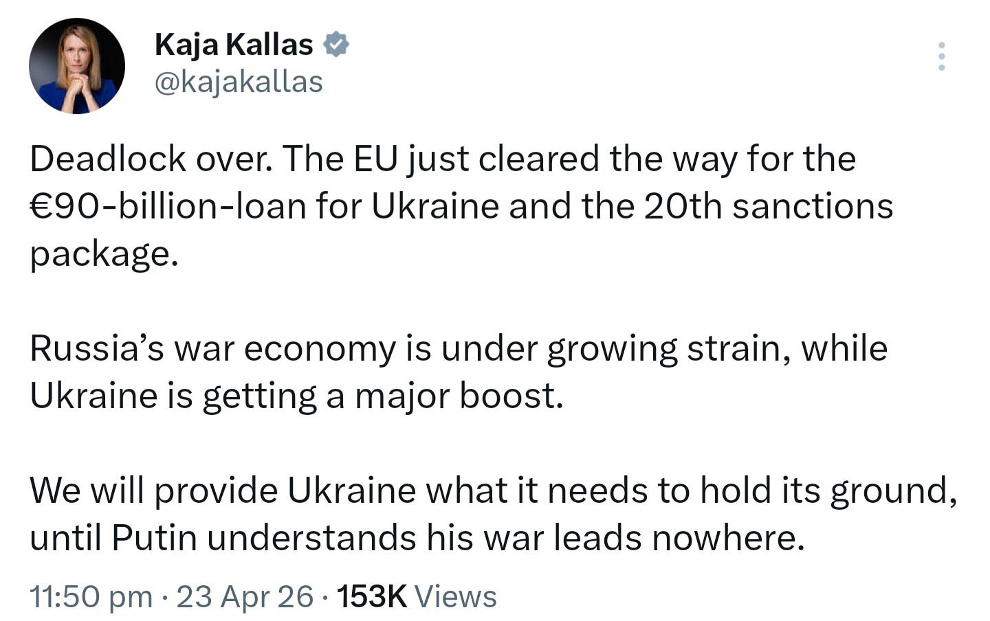 we have given them over 200b already and those 20 sanction packages has only hurt europeans :D