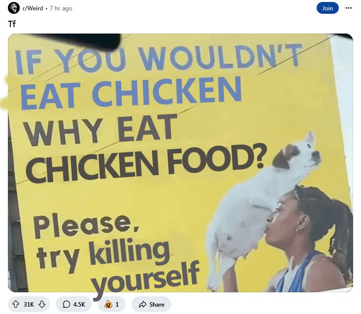 instead some bullshit about chickens