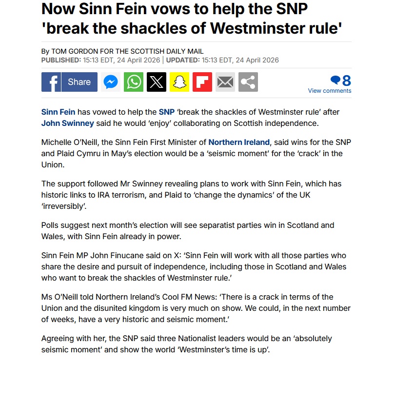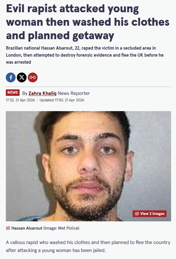 >Influencer dies days after being hit by car in Sohohttps://www.bbc.co.uk/news/articles/cx29w1z1lkzo>How Labour's secretly moving hundreds of migrants into picturesque villages. And in one case, the first locals knew was when an Afghan started 'harassing' girls at the school gatehttps://archive.ph/2RlV0>UK bed company on brink of administration - business dates back to 1870https://www.express.co.uk/news/uk/2198425/uk-bed-company-brink-administration>Benefit claimants handed discounts for beach huts and barshttps://archive.ph/Ey7xu>Security vetting stepped up after MP is given bodyguard with far-right linkshttps://www.theguardian.com/politics/2026/apr/25/security-vetting-stepped-up-after-mp-is-given-bodyguard-with-far-right-links>Greggs moves food and drink behind anti-theft counters in shoplifting crackdownhttps://www.independent.co.uk/news/uk/crime/greggs-theft-counters-shoplifting-west-croydon-b2964857.html>Starmer: Foreign Office chief faced ‘everyday pressure’ to clear Mandelsonhttps://www.standard.co.uk/news/politics/keir-starmer-olly-robbins-peter-mandelson-prime-minister-foreign-office-b1280002.html>Counter terrorism police called in after van driven into gate at Leicestershire drone factoryhttps://www.itv.com/news/central/2026-04-25/counter-terrorism-police-called-in-after-van-driven-into-gate-at-drone-factory>'Iran spy' says he was offered €50,000 to film London TV officeshttps://archive.ph/SxSUV