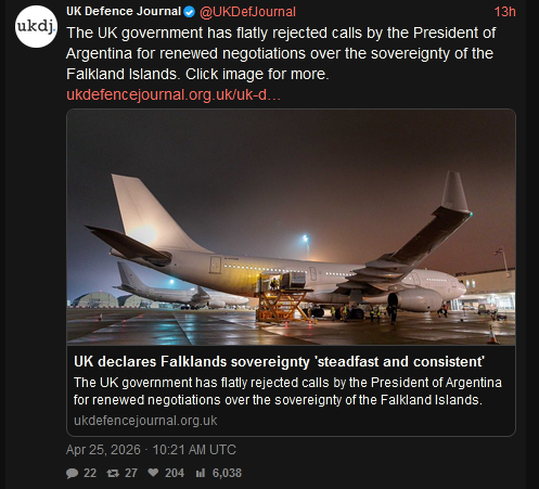 >The Telegraph also revealed earlier this week that Washington had forced Britain to accept a deal to arm Argentina with F-16 fighter jets.cUcK country >Foreign Office officials were told “in no uncertain terms” not to oppose the weapons deal, despite concerns about the Falklands, sources told this newspaper.>Argentina took delivery of American F-16s from Denmark last year in a rare example of Western allies arming Buenos Aires.Yeah cheers Denmark, thanks for the solidarity after we stuck our necks out over Greenland >Britain has a strict ban on exporting any weapons or components to Argentina because of competing sovereignty claims over the Falkland Islands.>Although Britain had no veto over the F-16 deal, it could have raised objections in Washington to try to prevent the transfer going ahead.