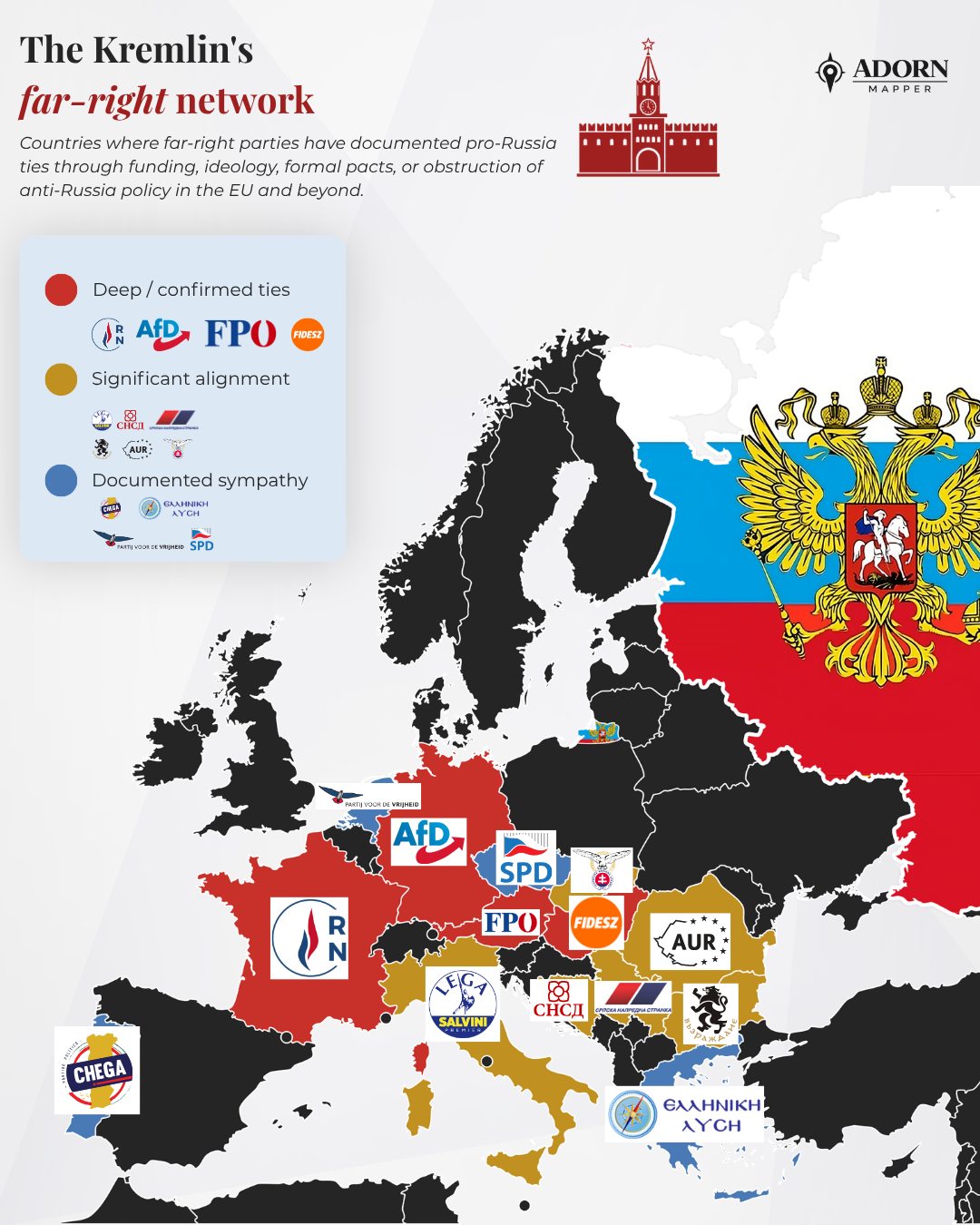 It's funny how every European right wing party is suddenly being labeled as pro-russian, while literal leftist/commie parties openly praising Soviet union and Russia are being left out.Peak clown world.>https://www.reddit.com/r/MapPorn/comments/1svgl2h/pro_russian_stance_parties_in_europe/