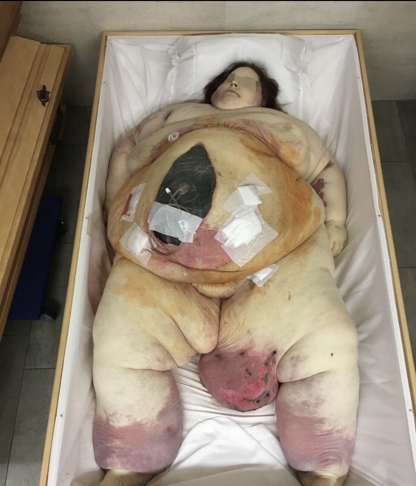 That's a cardiovascular issue, heart can't keep up with that much of fat, holy shit how do you get this big? Do caskets for these people exist. If I hate 8 meals a day I could probably achieve this in 10 years (don't eat American food)