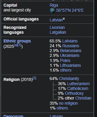 >>533866349Don’t feel too retarded I didn’t know it until I went there, about a quarter of Latvias population are Russians and pretty much don’t consider themselves Latvian.
