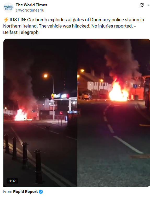 >>533867631Where does it say it was IRA? IRA is no longer active. There are many different factions.It's just a car burning. A lot of shit like this still happening in Northern ireland.
