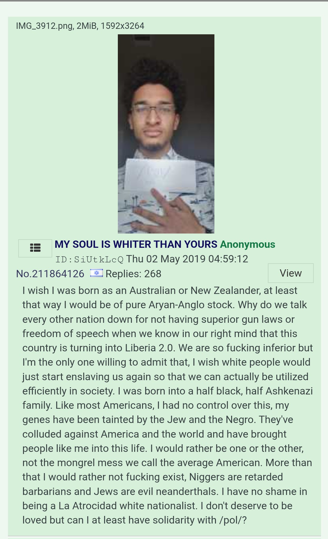 >>533877507>Assassinating Zion DonThat's the opposite of KWABOTY, he's a martyr and not a slave to the Yids, unlike you. We need more people like him raping white genociding, ww3 starting "JOG elites"