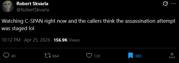 The assassination attempt is obviously staged. Even the dumbest retard can put 2 and 2 together and realize this is just an attempt to save the midterms. Now we’ll see if the average American is even dumber than that, because this shit couldn’t be more obvious.