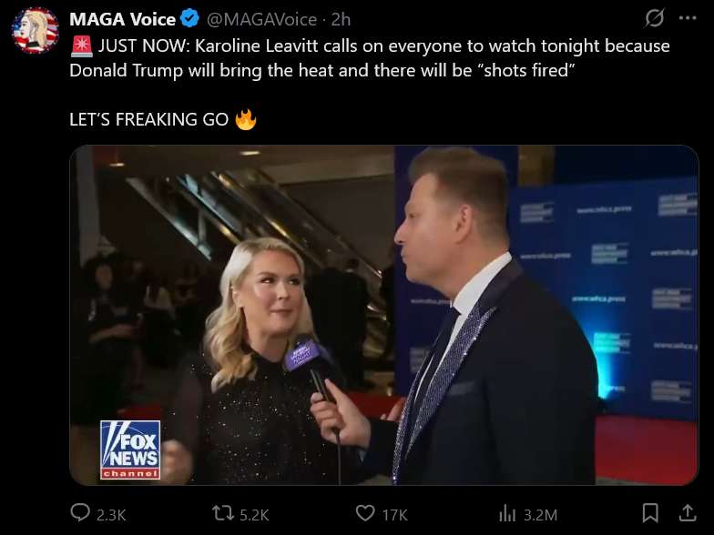>There will be some shots fired tonight, in the room.What did she mean by this?https://x.com/MAGAVoice/status/2048180791356821988