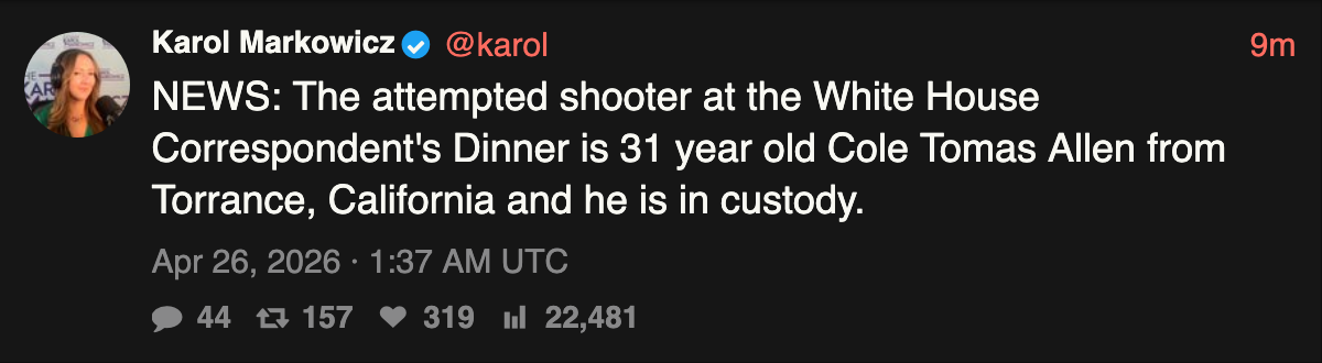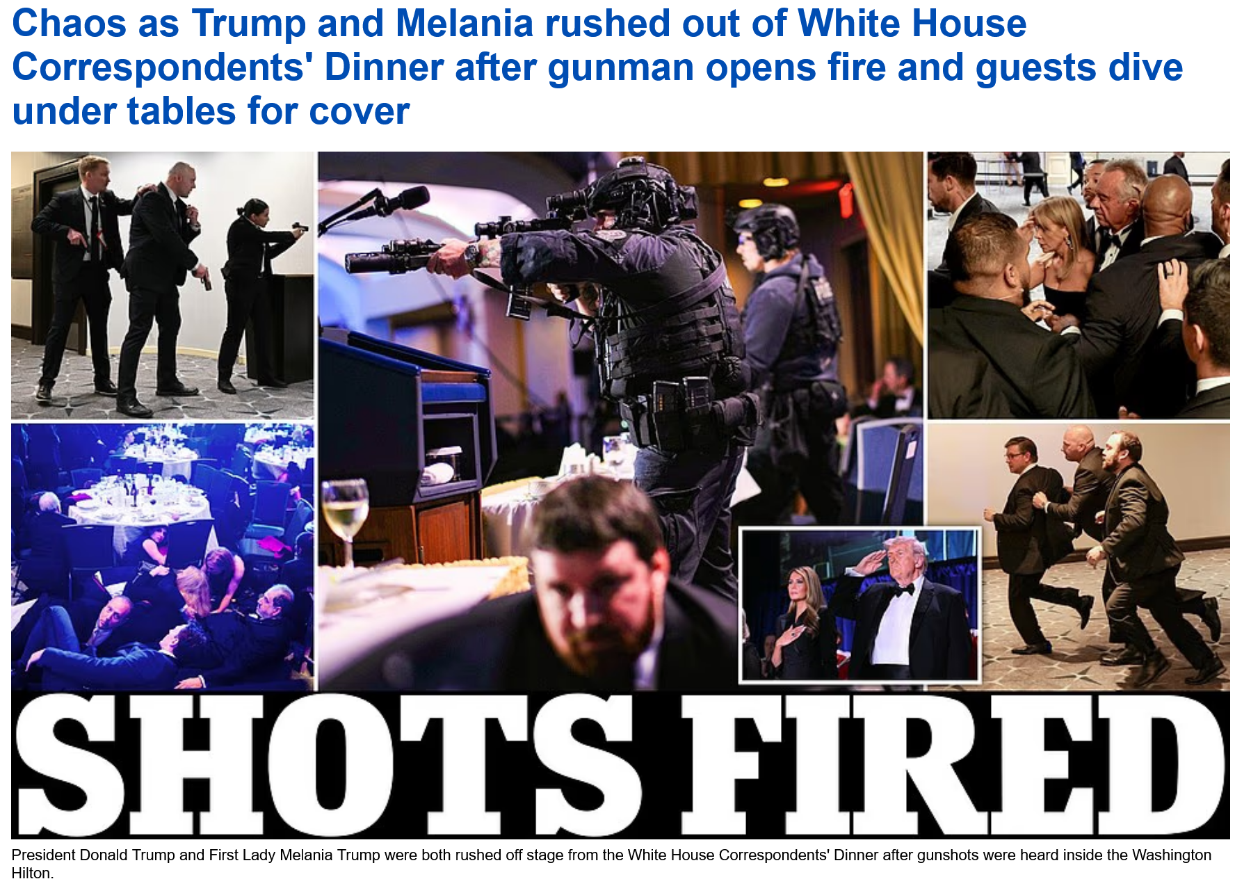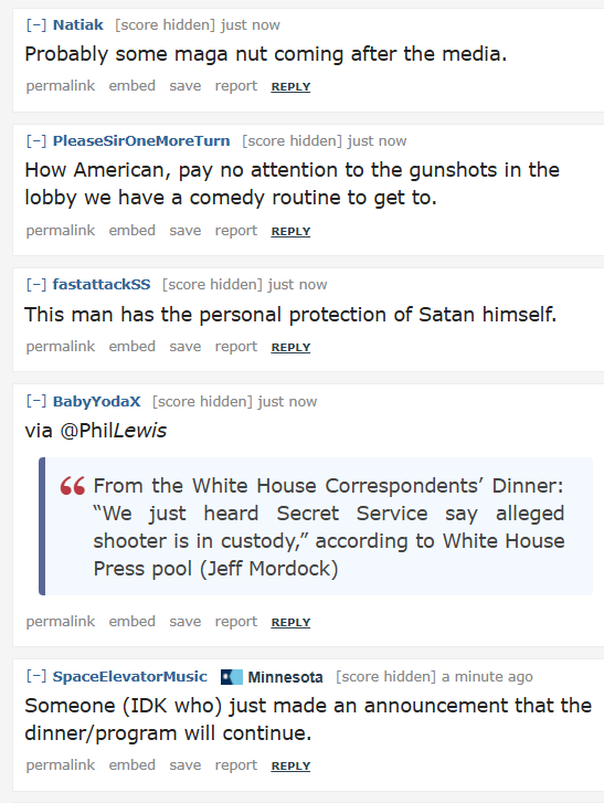 >>533872437One, possibly two people tried to rush the correspondents dinner and shoot Trump. Suspect is down or otherwise in custody. Show may go on as planned in a bit.