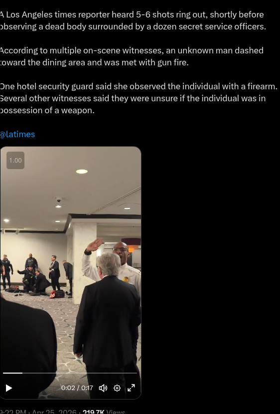 THERE WERE TWO SHOOTERS1 SHOOTER IS DEAD, THE OTHER WAS ARRESTEDFOOTAGE OF THE DEAD NIGGER BODYhttps://x.com/GavinJQuinton/status/2048211039204876747https://x.com/GavinJQuinton/status/2048211039204876747https://x.com/GavinJQuinton/status/2048211039204876747