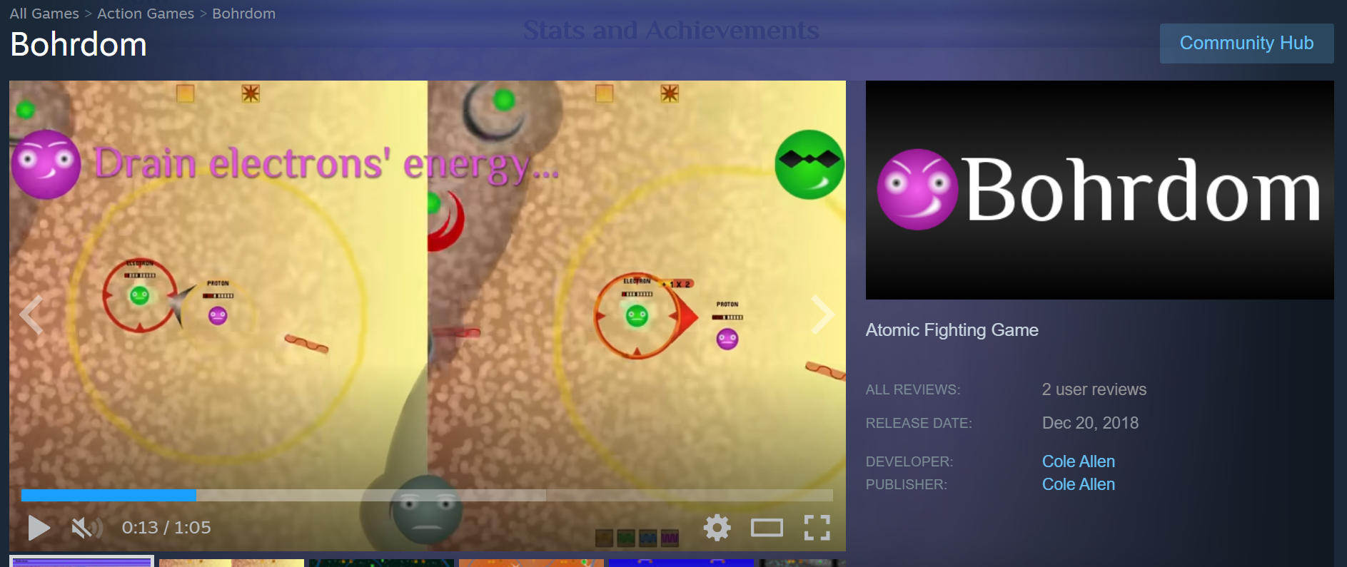 His steam game: https://store.steampowered.com/app/945530/Bohrdom/