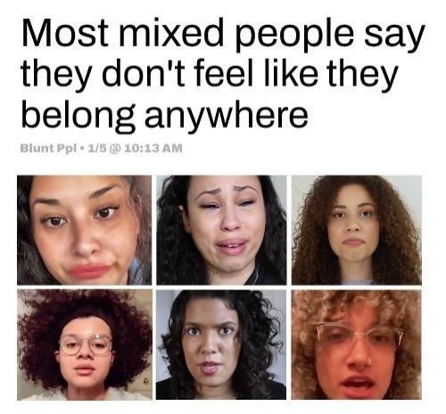 >>533884572>Whites wouldn't reject mulattos ifSure they would, and the mulatto know it too. They know that they actually have no choice, no say in the matter, even if they prefer whites and white culture. Their own family and friends might see them as white-aligned, but no one outside of their family does - especially if shit hit the fan in a racial way. Mulatto people are keenly aware of this, and don't talk about it with their family because it would only upset them. Pretty sad in a way, some of them are kind and smart, but you don't get a say over how others view you, and they aren't viewed as white. Never will be.I think a mulatto who knows all of this about themselves and still chooses to avoid anti-white rhetoric is carrying out an heroic act. They'll never be accepted, but they do it anyway. That is noble.
